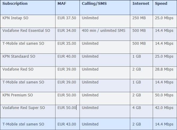 It's also interesting to see how quickly KPN has responded to new offers introduced recently by Vodafone and T-Mobile. KPN's new plans are a mix of Vodafone’s Red subscriptions and the speed caps introduced by T-Mobile.