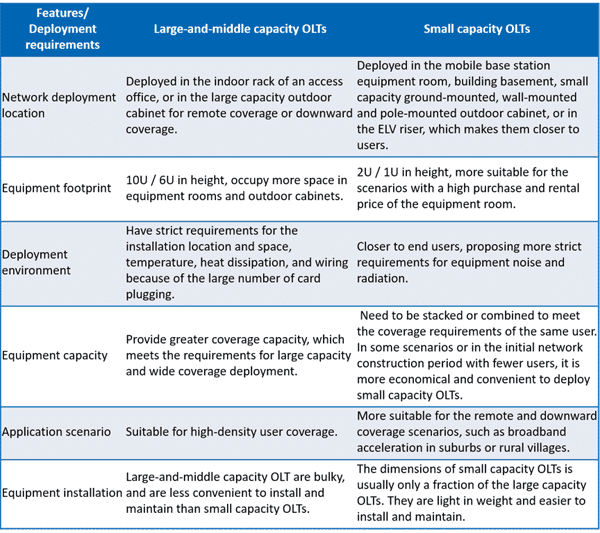 Table 1 Comparison between small capacity OLTs and large-and-middle capacity OLTs