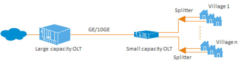In some vast and sparsely-populated areas, network coverage confronts difficulties. The distance between the central node and the remote node is long, the line resources are scarce, and there are large amounts of intermediate nodes, connections, and complicated lines. Deploying small capacity OLTs downward is a cost-effective solution that covers more users and requires lower costs.