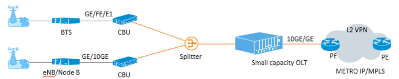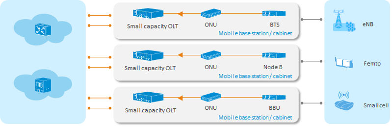 Traditional mobile bearer networks often require a large amount of construction work, high investment, and long time. If the operators use the idle ports and optical fiber resources of the deployed FTTx network, the high-bandwidth channels provided by GPON and 10G PON, and the time and clock synchronization mechanism of the PON system to provide mobile bearing, the operators can improve the resource utilization of existing FTTx network. Small capacity OLTs have the features of small dimensions, flexible deployment, and low cost, and allow to share equipment room, rack and cabinet resources with mobile devices, hence reducing mobile network construction costs.
