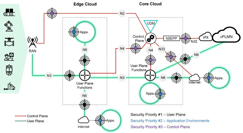 The distributed and open nature of 5G and its deployment in enterprise environments and use cases will increase the control plane potential exposure via network exposure function interworking and the sometimes physically unsecure nature of the 5G radio network.