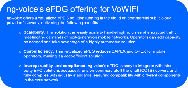 Virtualization has made it possible to deploy the ePDG as a software-based solution, reducing costs and offering greater flexibility than traditional, hardware-based solutions. Virtualized ePDGs can run on commercial off-the-shelf (COTS) servers and integrate easily with third-party EPC solutions. This virtualized deployment model allows operators to scale the ePDG efficiently and respond to the growing demand for secure, high-quality Wi-Fi services.