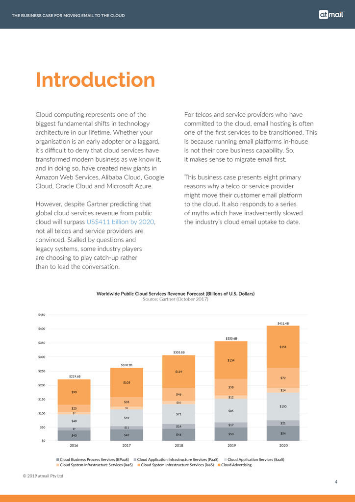 This business case presents eight primary reasons why a telco or service provider might move their customer email platform to the cloud.